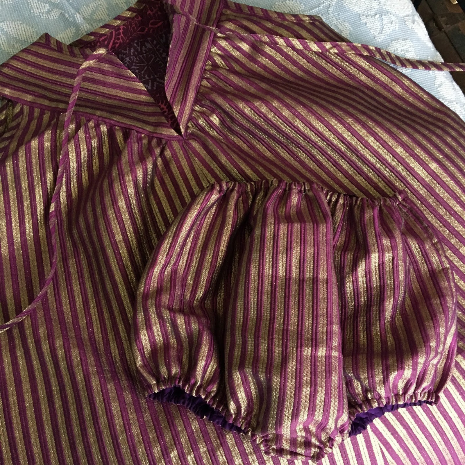 | She's still wondering if the label on the coveralls was accurate - "One size saves all." |