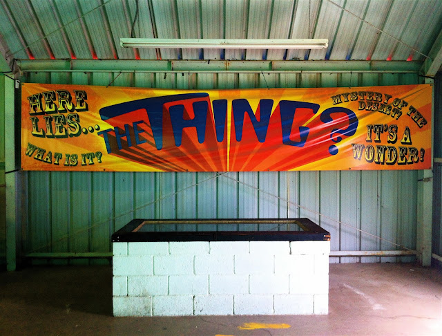 Looking like an abandoned set piece from Plan 9 from Outer Space, the lure of this temporarily-grounded flying saucer was irresistible; we were as powerless to its wacky tacky tractor beam as we were to that of its second-cousin, the Arizona Space Orb. And me without my tinfoil hat.